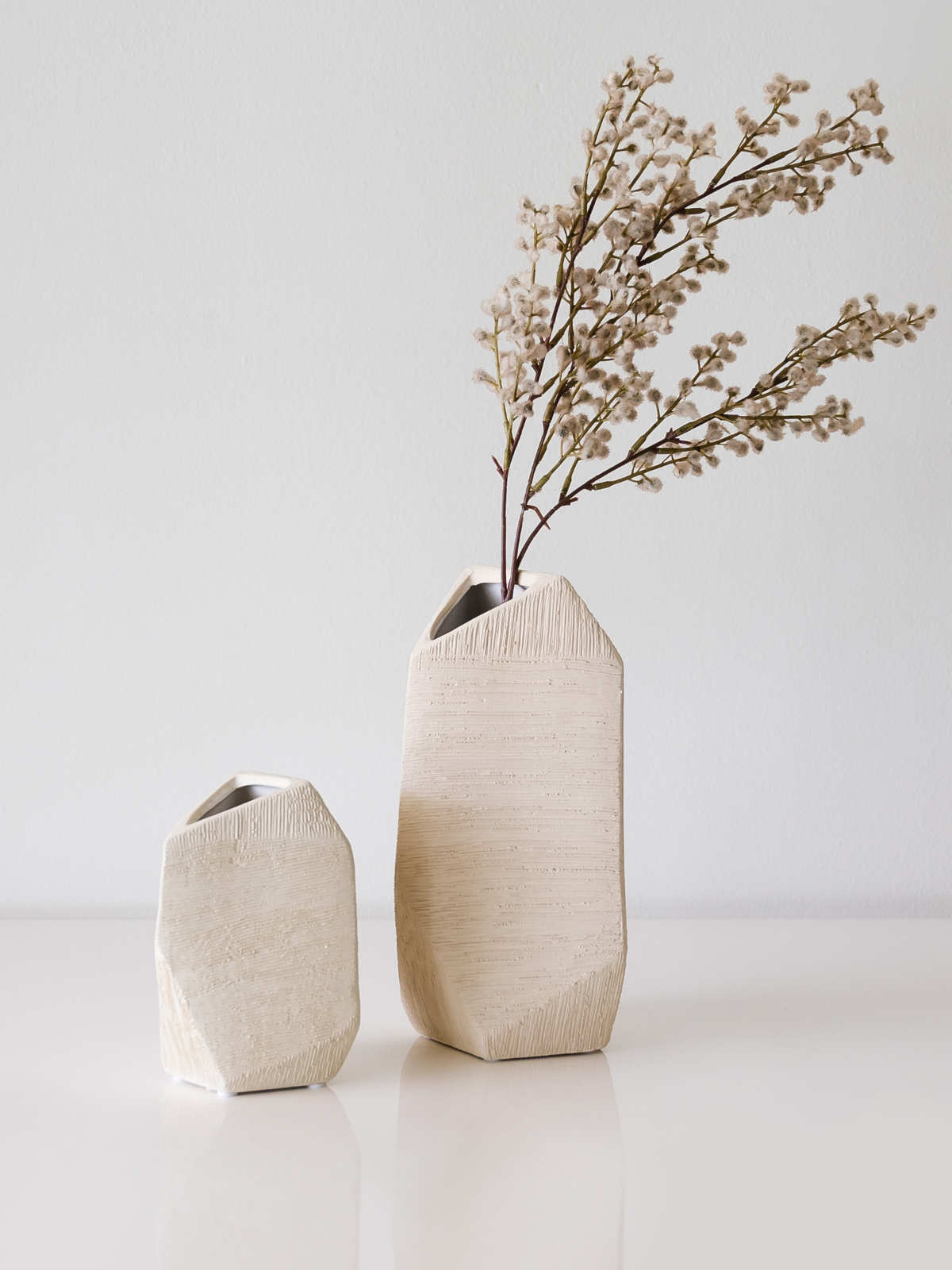 This set includes two vases in complementary sizes: